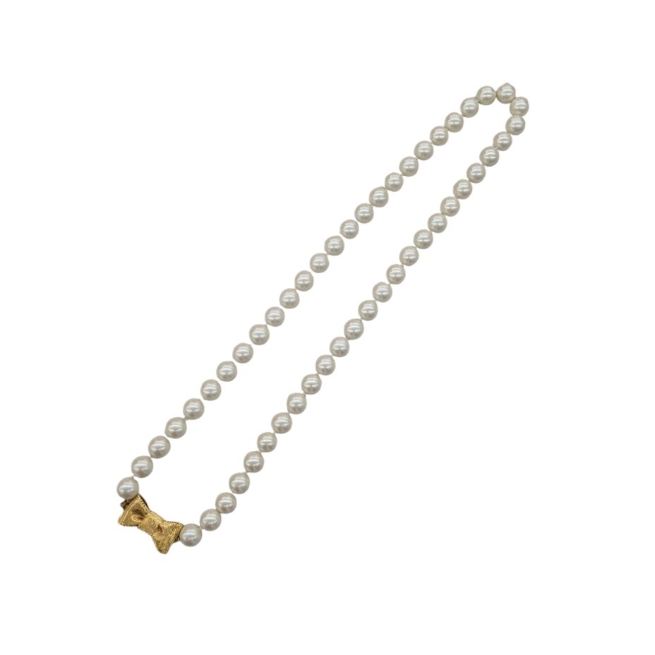 - kate spade ケイト・スペード リボンモチーフ 大粒フェイクパールネックレス ホワイト ゴールド 保存袋付き