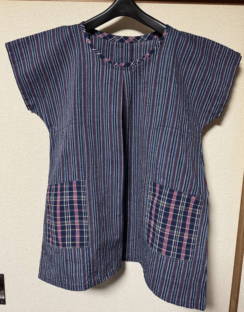 - ハンドメイド しじら チュニック 綿100% 藍染 ポケット2個 ゆったりサイズ / 部屋着 ルームウェア / しじら織り 反物より kimono 浴衣地