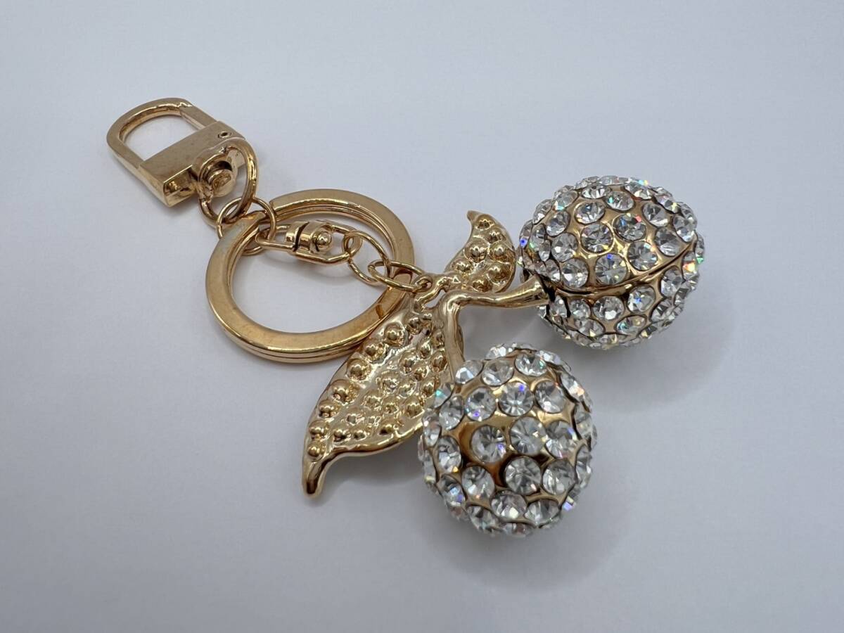 - B) ゴールド 金色 ラインストーン キーホルダー サクランボ キーリング C61i