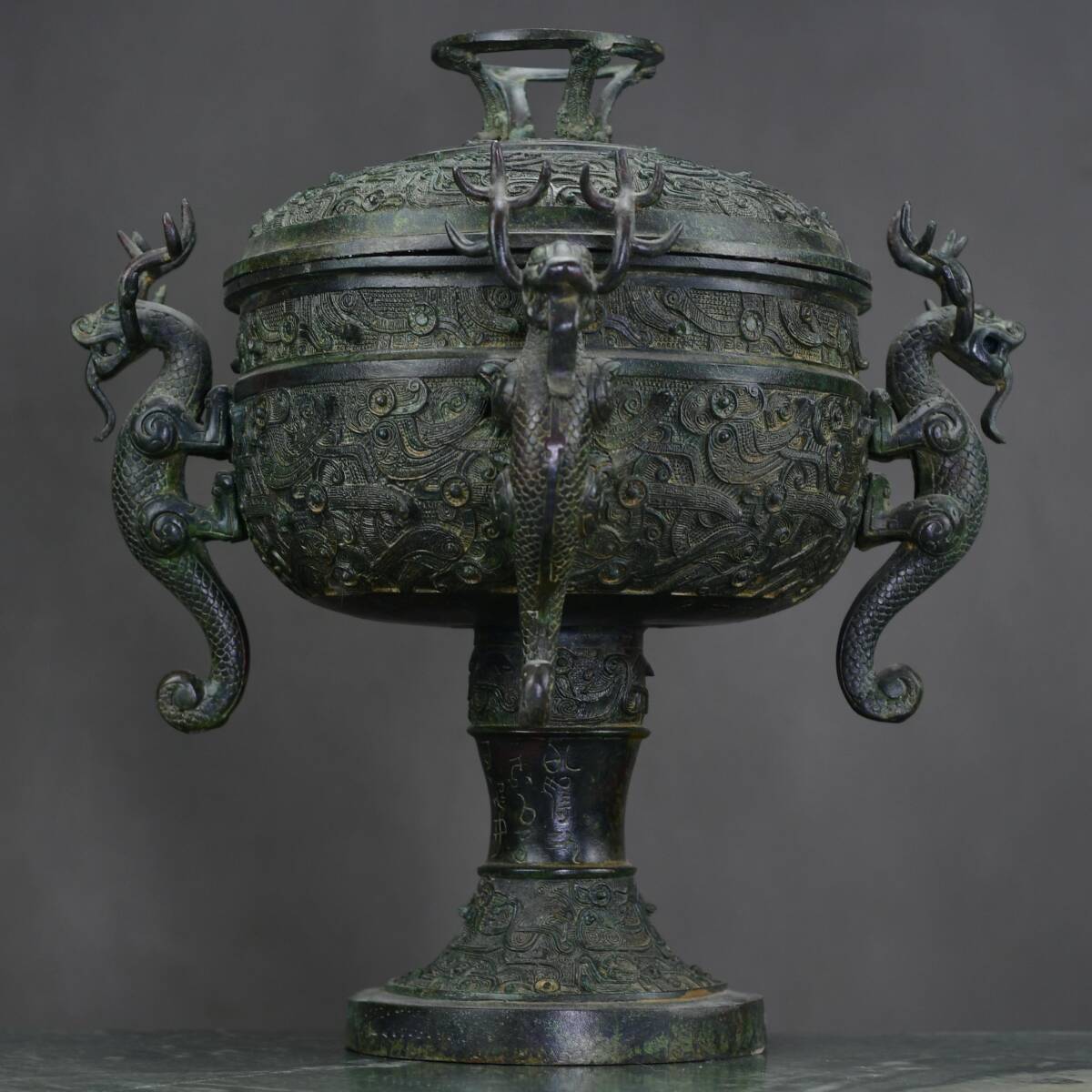 - 青銅器 旧蔵 商周時代 商代青銅四龍豆、 酒器・尊・鼎 銅製 唐物 收蔵品 時代物 古美術 古置物 希少珍品 供養品 文房具 極細工6.11