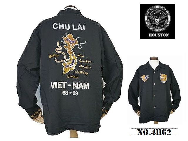> 【送料無料 30%OFF 】HOUSTON ヒューストン 刺繍スーベニアシャツ・スカシャツ 「 MAP 」柄 NO.41162 BLACK_Lサイズ