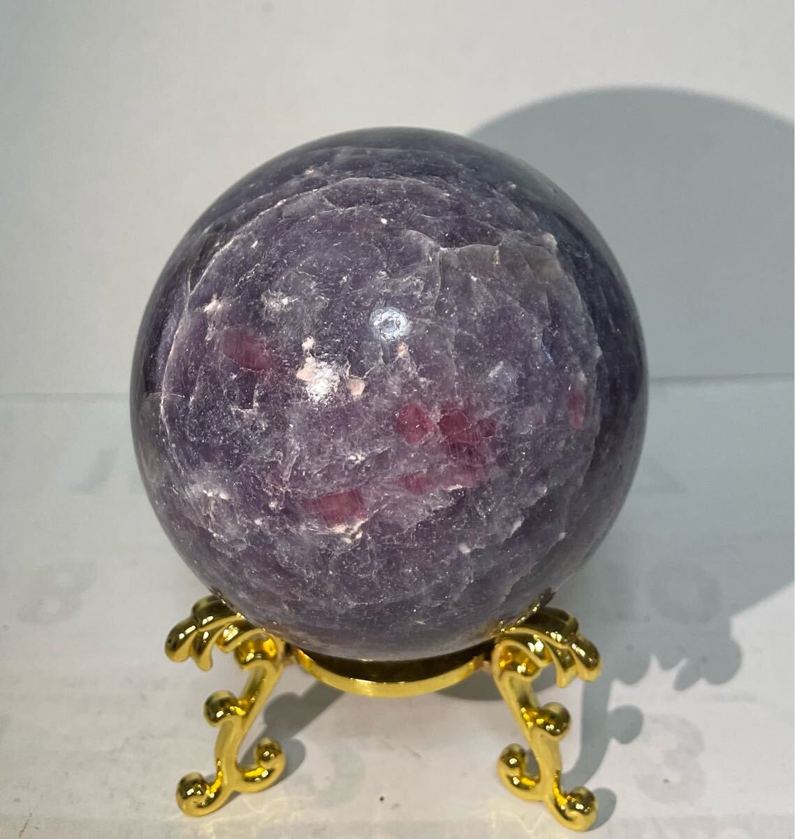 - ユニコーンストーン 丸玉 003 スフィア レピドライト ピンクトルマリン 風水晶 幸運 パワーストーン ラッキー 天然石 魔除 お守