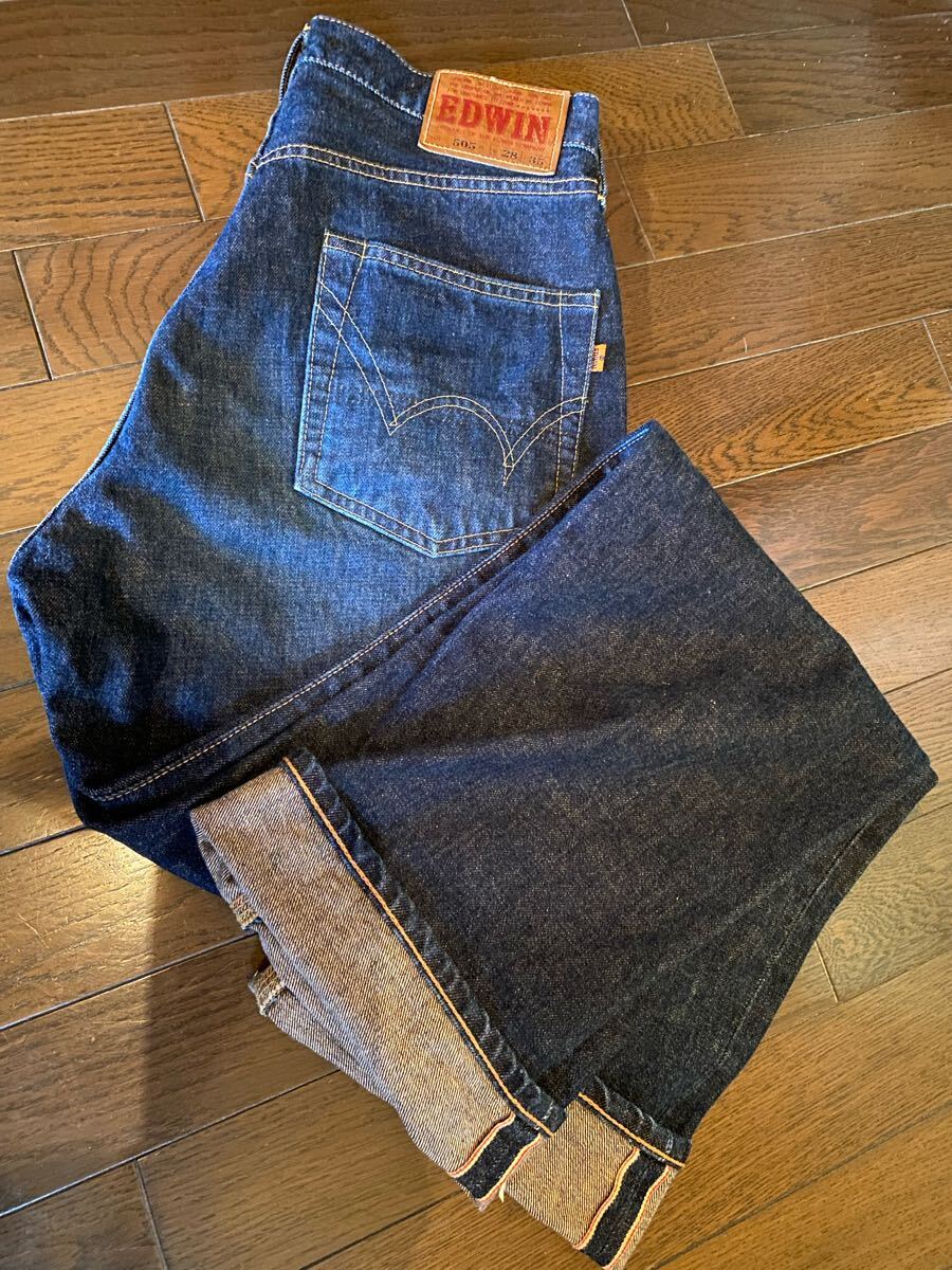 - 希少レア美品90's日本製vintageデニムジーンズパンツEDWIN505Bボタンフライ赤耳ワイドストレート本革パッチチェーンステッチレプリカ復刻版