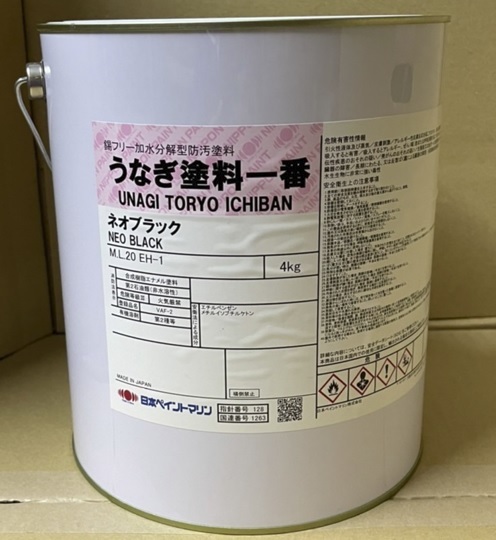 - 送料無料 日本ペイント うなぎ一番 ネオブラック (黒) 4kg 4缶セット ブラック うなぎ塗料一番 船底塗料
