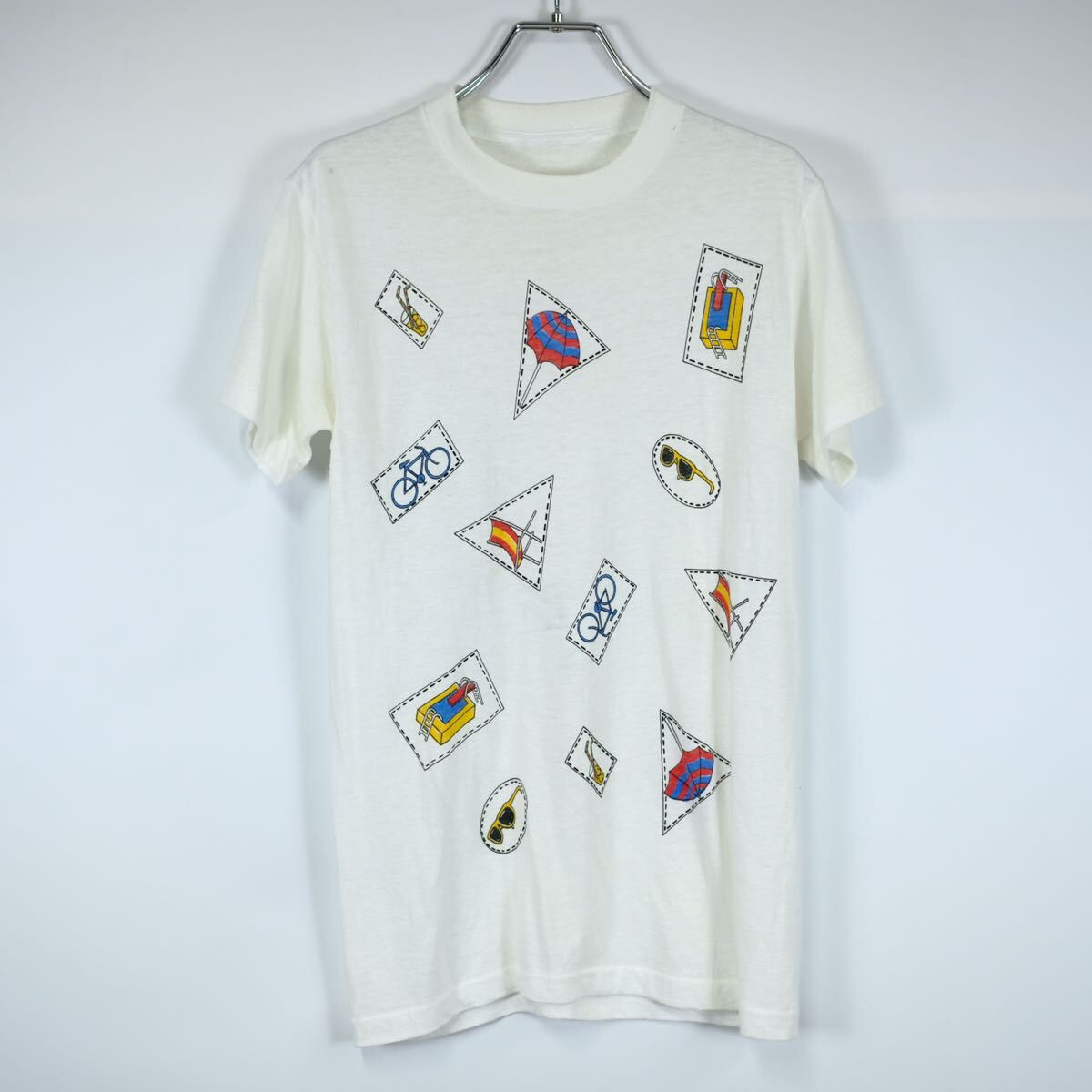 - 1980s ビンテージ アートデザイン プリントTシャツ 白ボディ 古着屋 USA製 シングルステッチ 襤褸 ボロ 90s