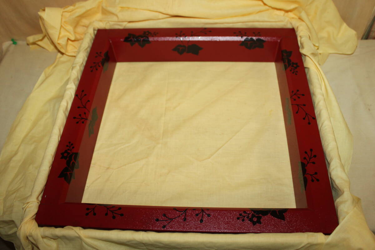 - ■お茶道具 炉縁【中村宗悦作】桐漆絵 朱叩塗 共箱共布付 検/炉壇/炉開き/置炉/炉被せ