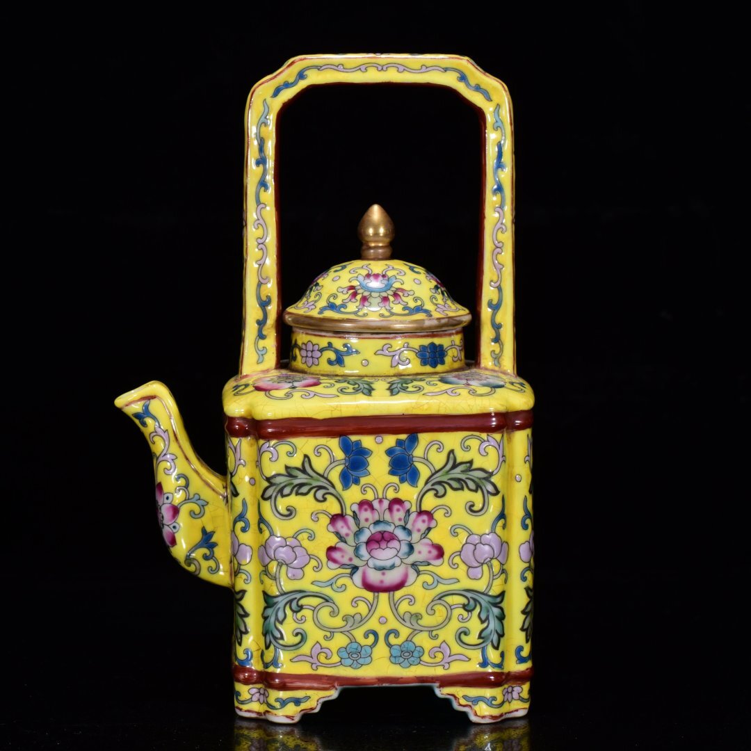 - 「清代 雍正年製 古陶磁器 粉彩壺 纏枝牡丹紋 提梁壺 急須 茶壺 茶道具 磁器」置物 琺瑯彩 古董品 骨董 旧家蔵出し 唐物 中国古玩 古美術品