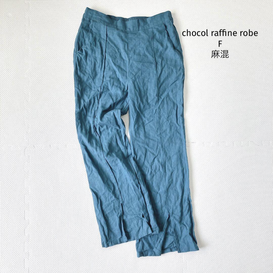 - ショコラフィネローブ 麻混 パンツ【F】裾スリット センターライン リネン混