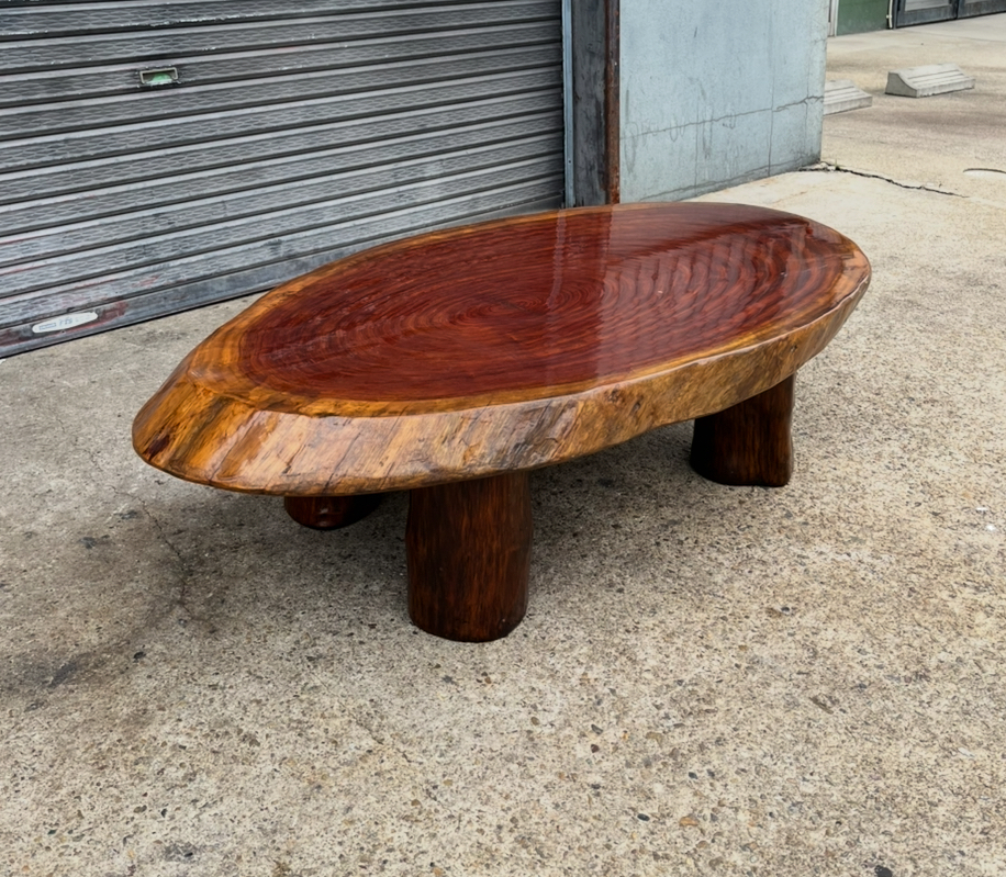 - 無垢1枚板 無垢材 座卓 和風 座敷机 ウレタン樹脂塗装 天然木 輪切り 楕円形 センターテーブル 天板厚み75mm 非常に重い