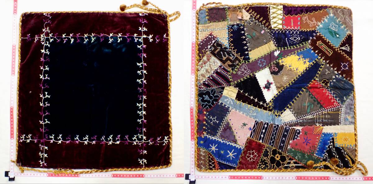 - クレイジーキルト ベルベッド 刺繍 敷物 アメリカンキルト アンティークキルト ハンドメイド 手作り ハンド刺繍 ヴィンテージ 海外生地