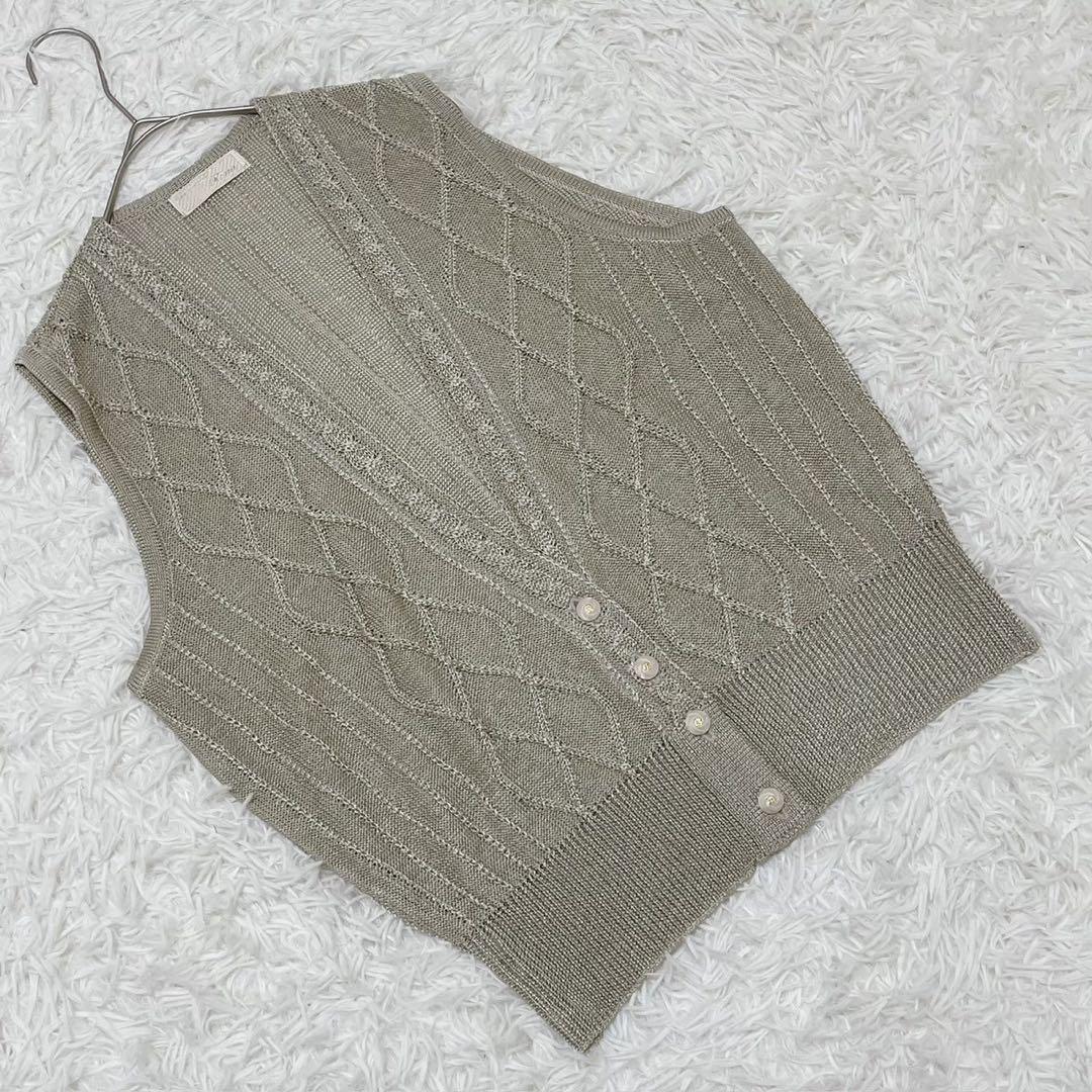 - 『リナ』 Vネックニットベスト ストライプ ダイヤ柄 レイヤード 重ね着 日本製