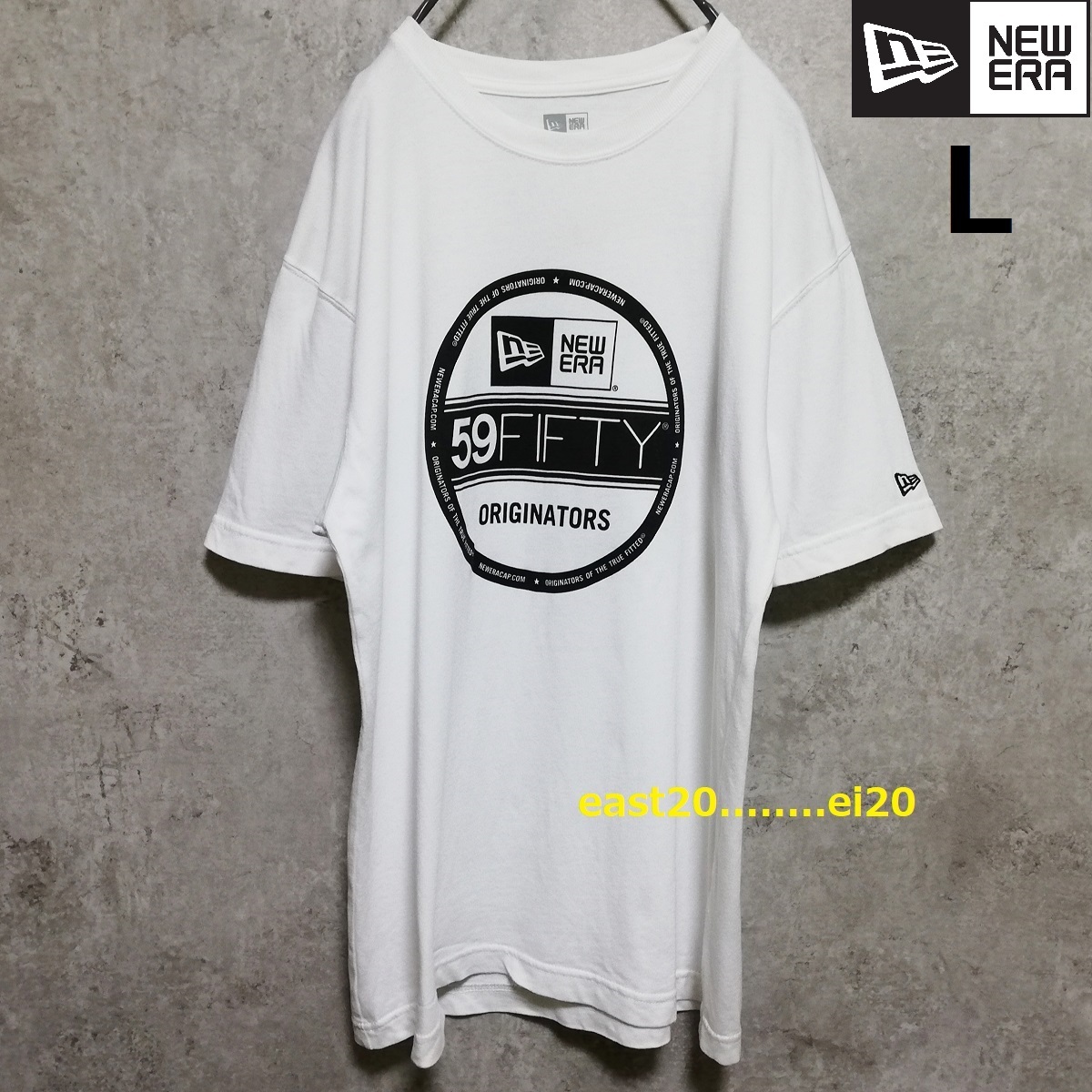 > NEWERA ニューエラ ロゴ 刺繍 59FIFTY キャップ ビッグ ステッカー PROUD TO PLAY 両面プリント Tシャツ L 白 ストリート 即決 送料無料