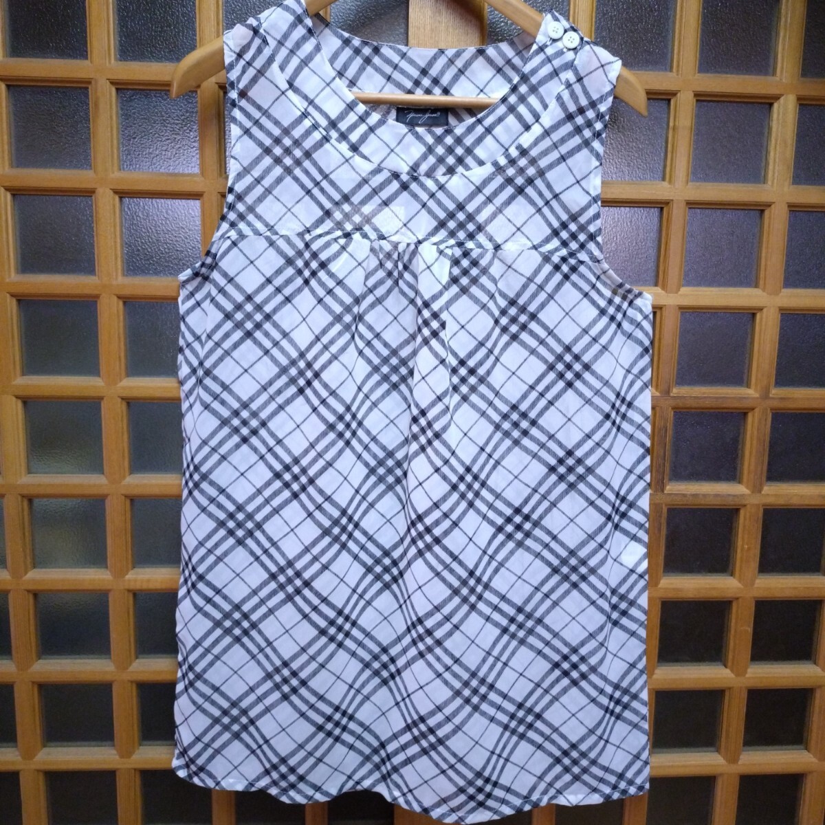 - 美品 ノースリーブ チュニック シースルー 白 ホワイト ギンガムチェック ボタン ヤフオクにも多数出品中