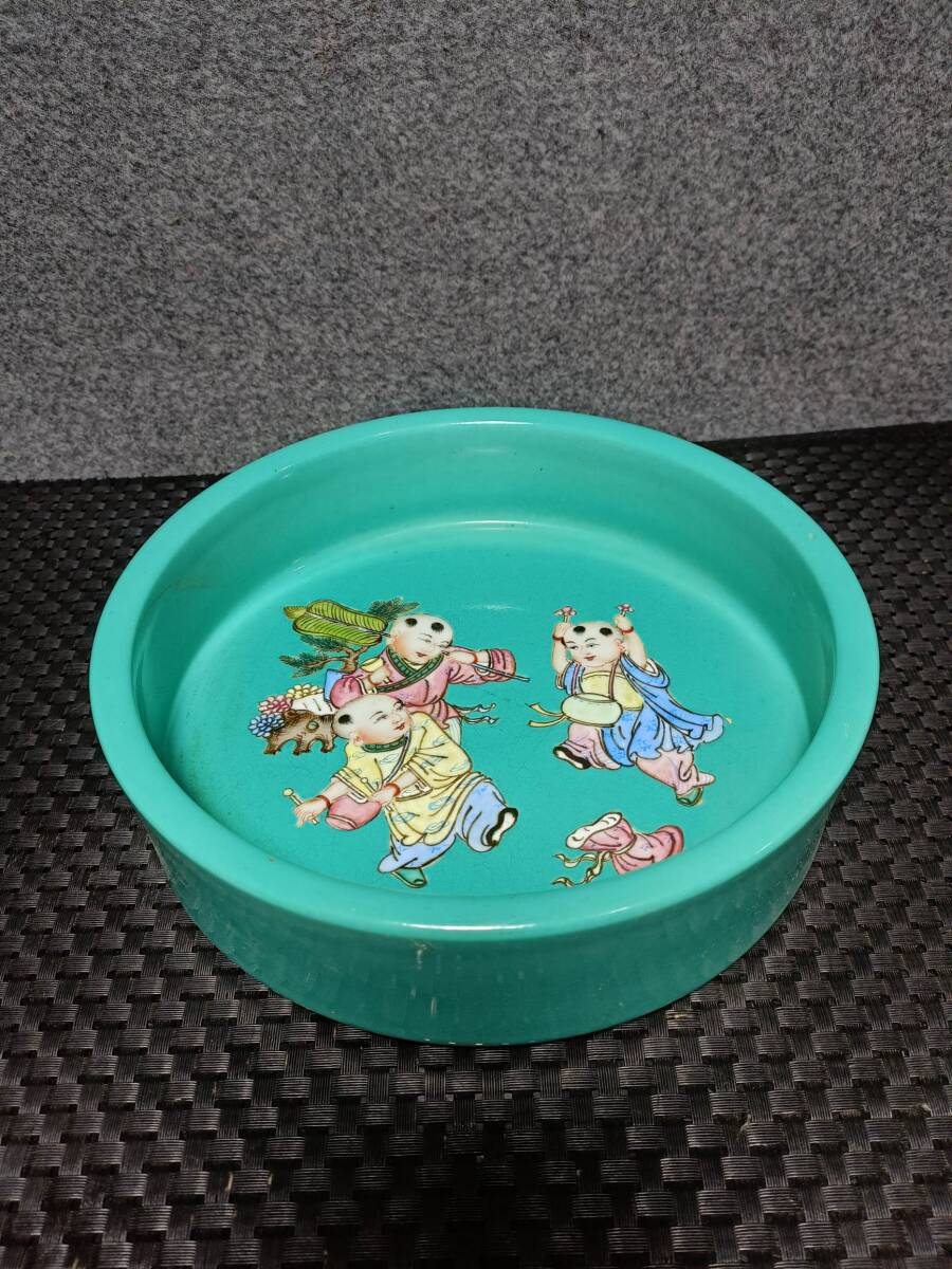 > 多宝閣 ■ 202174 中国磁器 中国骨董【清朝絵画 青バラ茶水彩】工芸品 施釉陶 陶芸 置物 收藏品 孤品