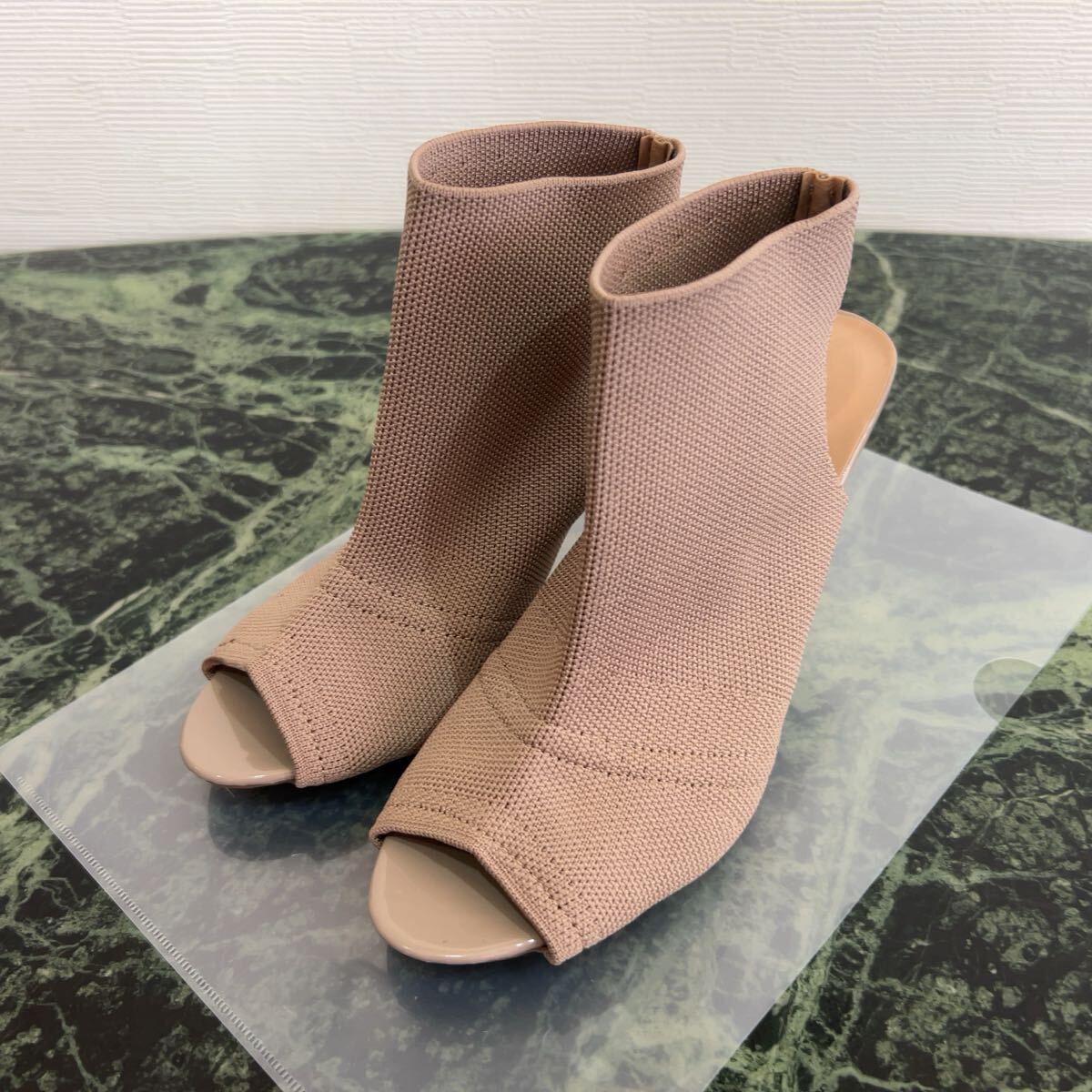 > 【新品】ニットショートブーツ★ブーツサンダル 23cm 23.0cm ベージュ ブーサン サマーブーツ オープントゥ Sサイズ