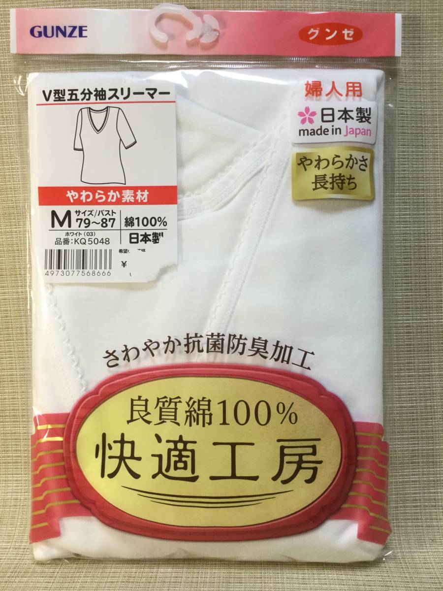 アンダーシャツ V型五分袖スリーマー M バスト79-87cm ホワイト 良質綿100% 日本製 やわらか素材 グンゼ 快適工房 さわやか防菌防臭加工