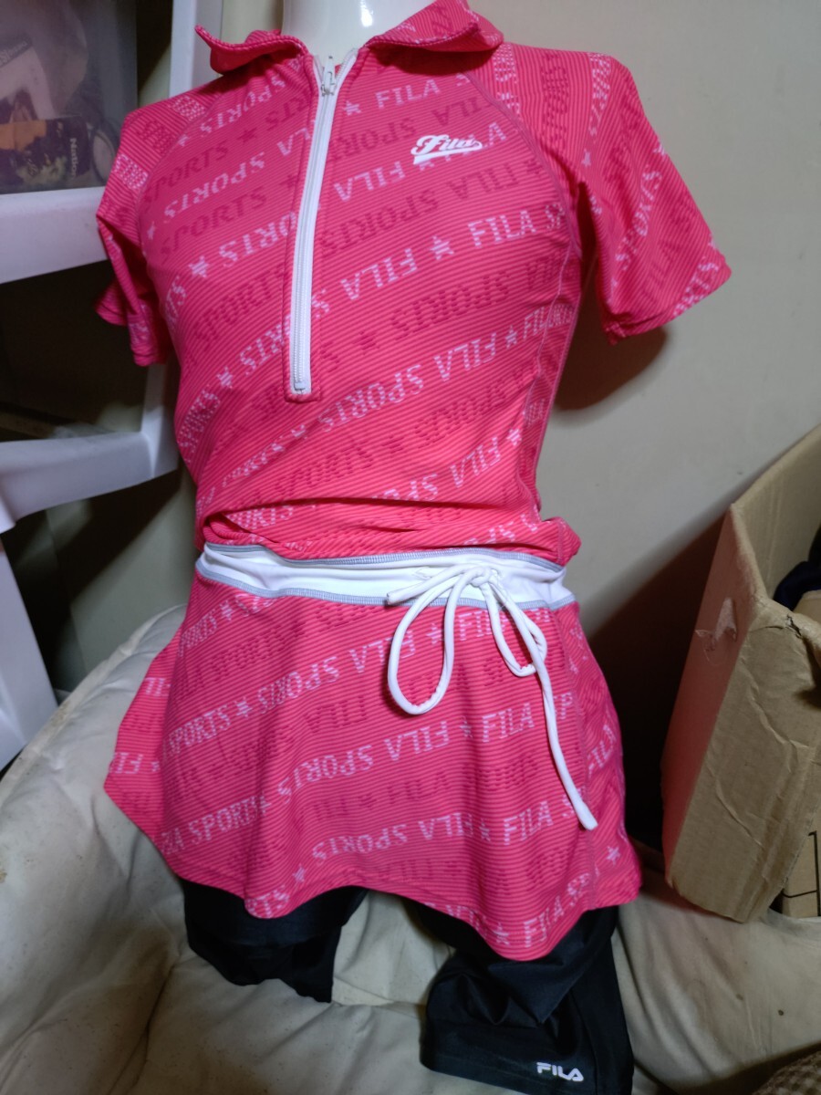 - M4222◆FILA◆フィットネス水着◆セレブなブラック×ピンク系セパレート水着◆7S