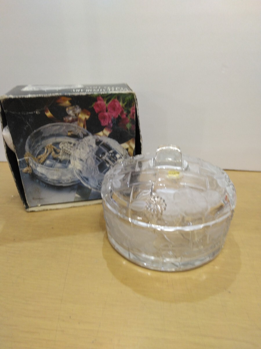 - 昭和レトロ ガラス蓋付 小物入れ 直径13cm CONTEMPORARY GLASS COLLECTION 長期保管品 現状品