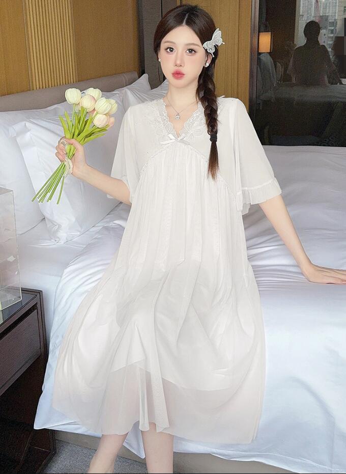 - M0612 ワンピースレディース● 20代30代40代 着心地抜群sexy ● パジャマ 上質 ゆったり white