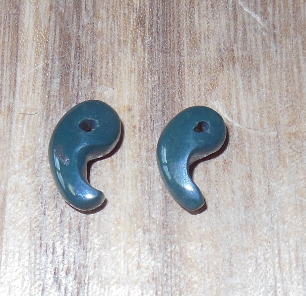 - 出雲 碧玉 出雲石 青瑪瑙 勾玉 (1cm) 2個セット コレクション整理