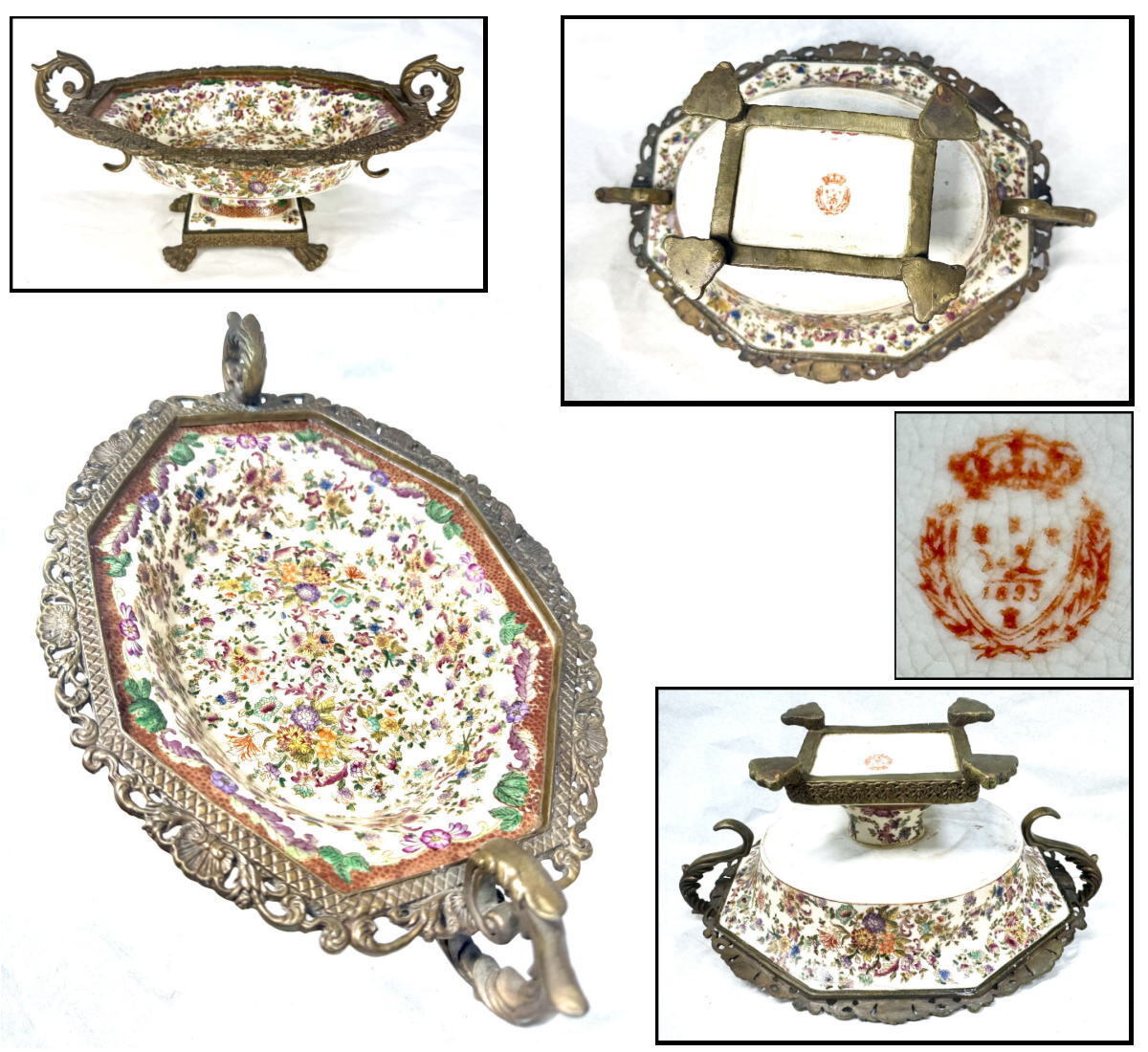 > 【送料無料】WL 1895 ウォン・リー磁器 ブロンズ 豪華な大きなボウル 菓子器 古染付 呉須 青花 焼物 入手困難 骨董 (旧家蔵出し) WWTT372