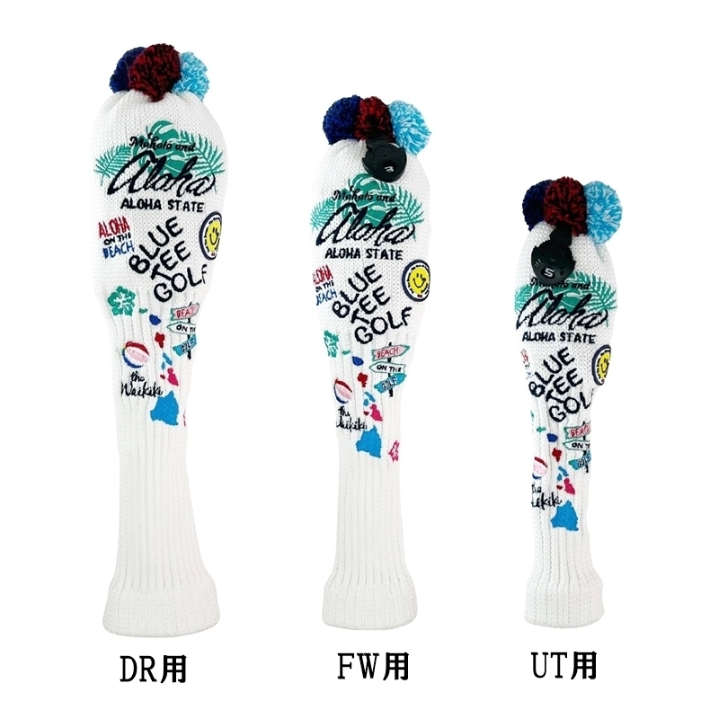 - ■オークション♪【3PA:ホワイト】ブルーティーゴルフ【ニット アロハ オン ザ ビーチ】3本セット(A)ヘッドカバー BLUE TEE GOLF NALO1