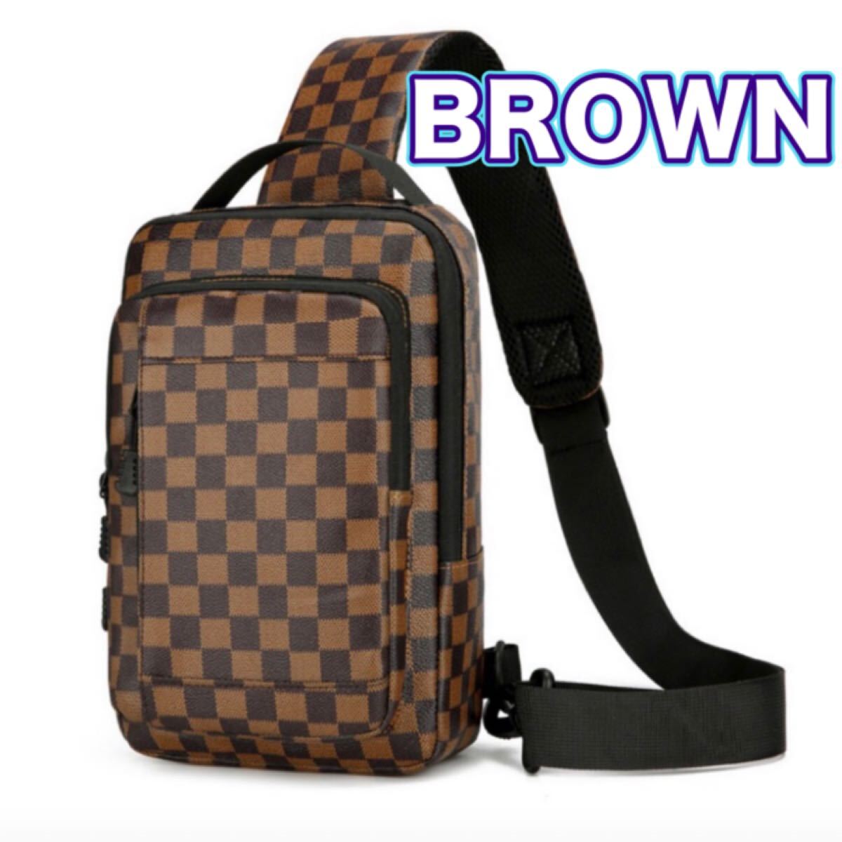 - ボディバッグ ワンショルダーバッグ ブラウン チェック柄 メンズ カバン 小物入れ 旅行 コンパクト ミニマム
