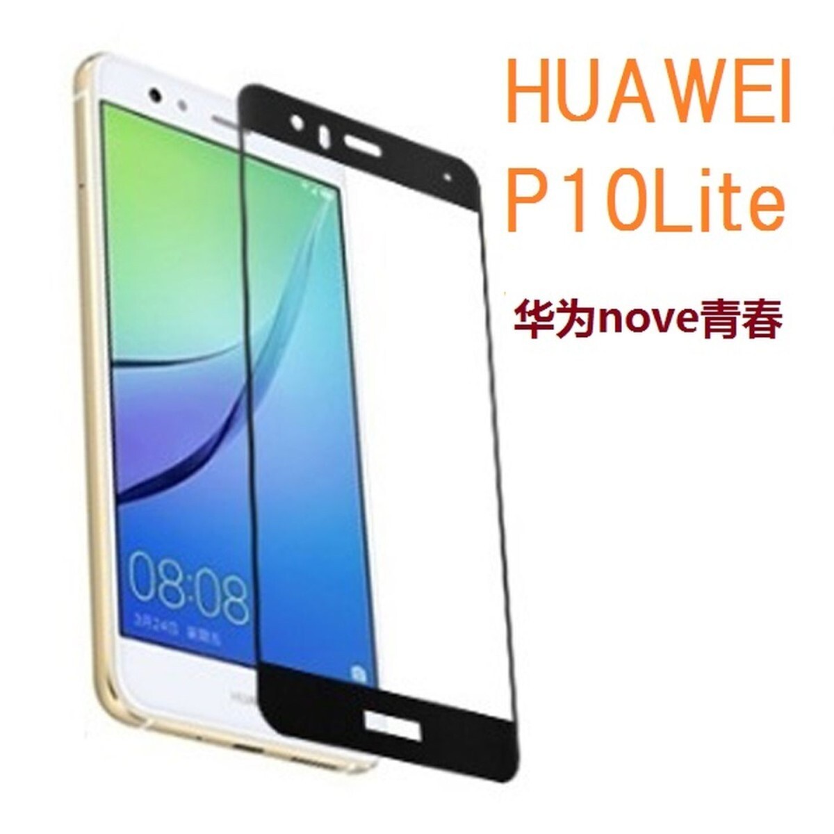 - HUAWEI P10 lite 5.2インチ 枠黒色 9H 0.26mm 強化ガラス 液晶保護フィルム 2.5D K338