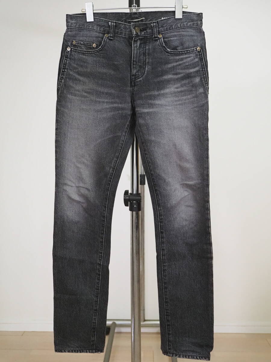 > SAINT LAURENT PARIS サンローラン 17AWロゴ刺繍デニムパンツ28黒 日本製