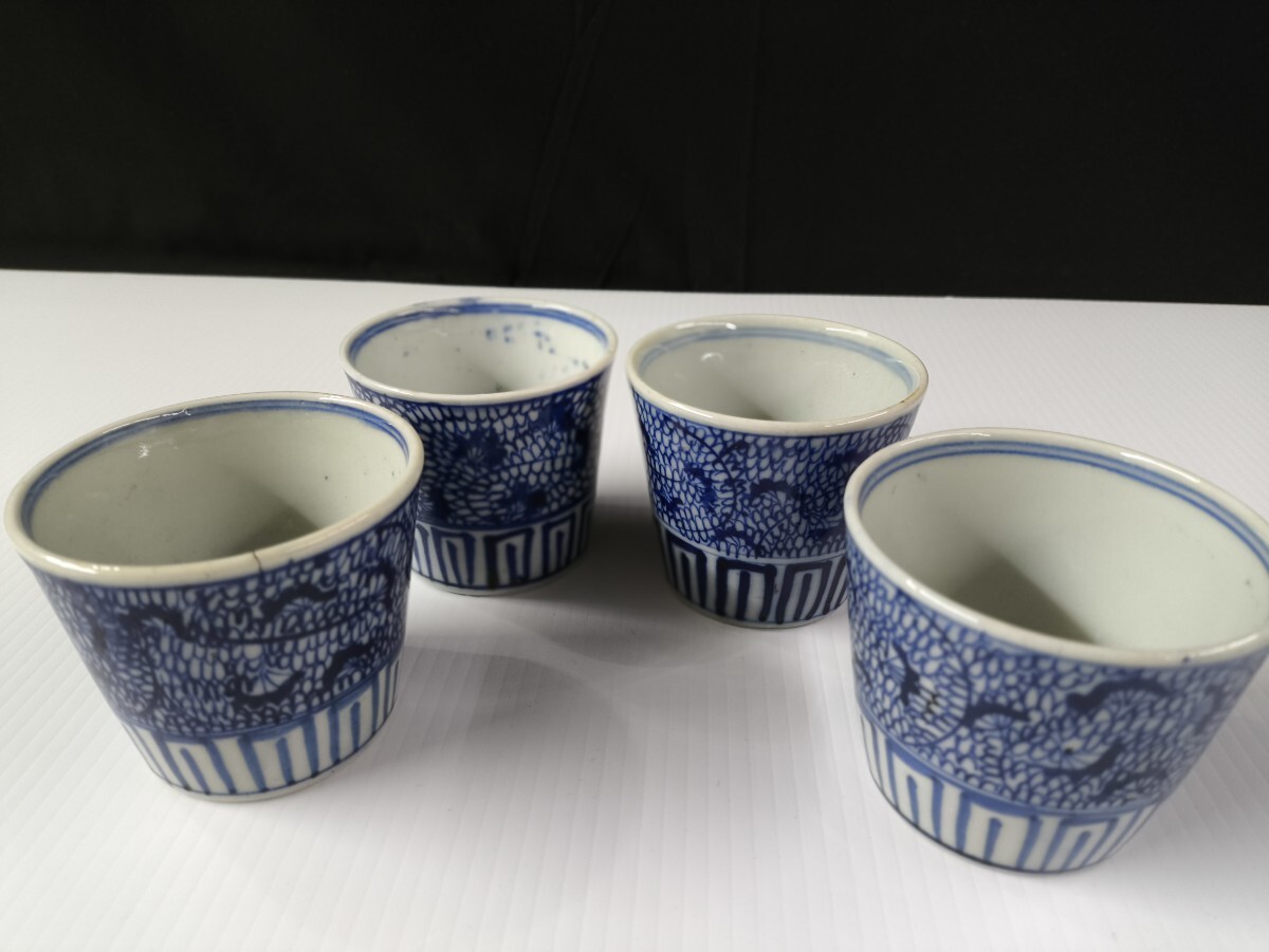 - 【江戸時代後期・蕎麦猪口・4個】そば猪口/そばちょこ/蕎麦ちょこ/微塵蛸唐草松紋/微塵蛸唐草/幕末/ベロ藍/蛇の目高台/ ※説明欄必読