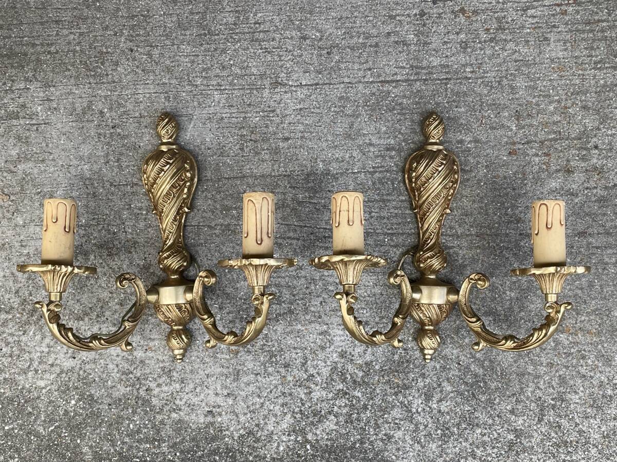 > 23. 2個セット!フランスアンティーク ランプ ブラケット 2灯 キャンドル 照明 ライト ウォール 蚤の市 店舗 什器 カフェ 美容室