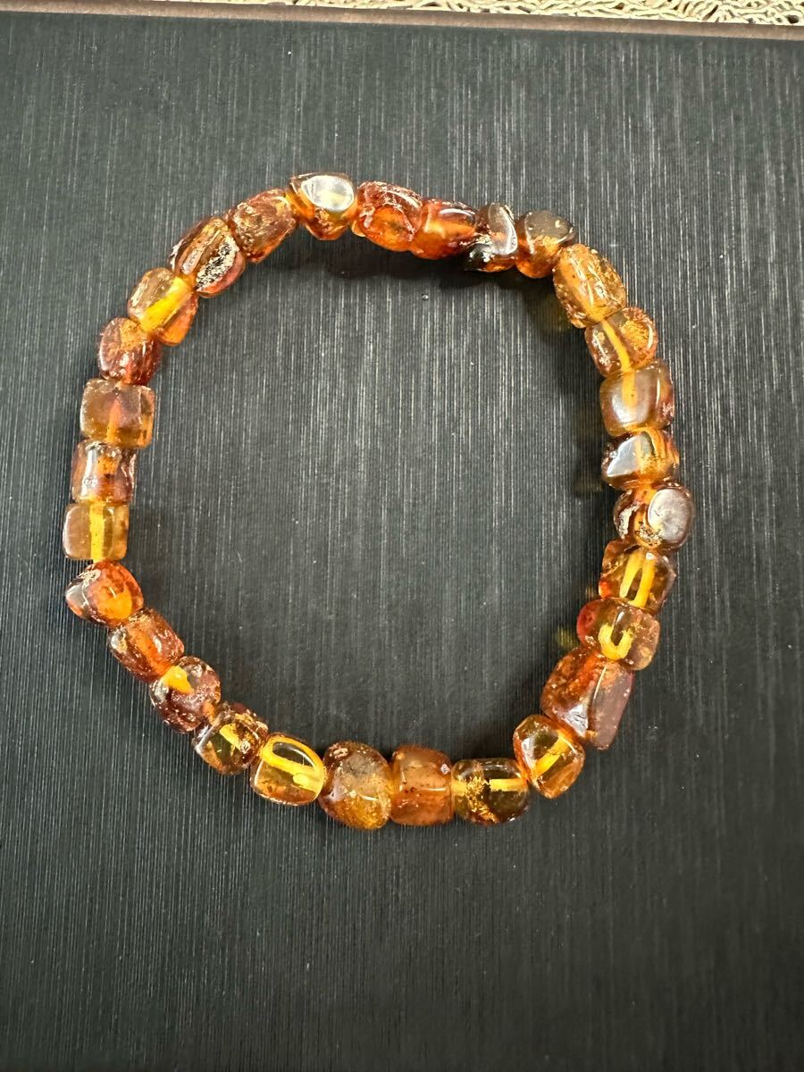 - T-746 天然 アンバー 本琥珀 ブレスレット 不規則形 天然保証6mm
