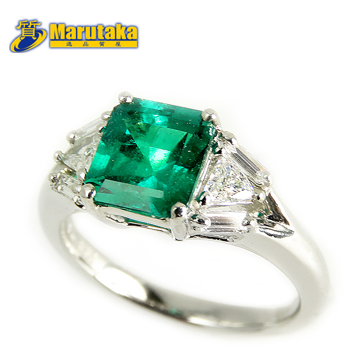 - エメラルド ダイヤ リング 12.5号 コロンビア産 F1 GIA 鑑別書 Pt900 E1.63ct D0.35ct 指輪 逸品質屋 尼崎