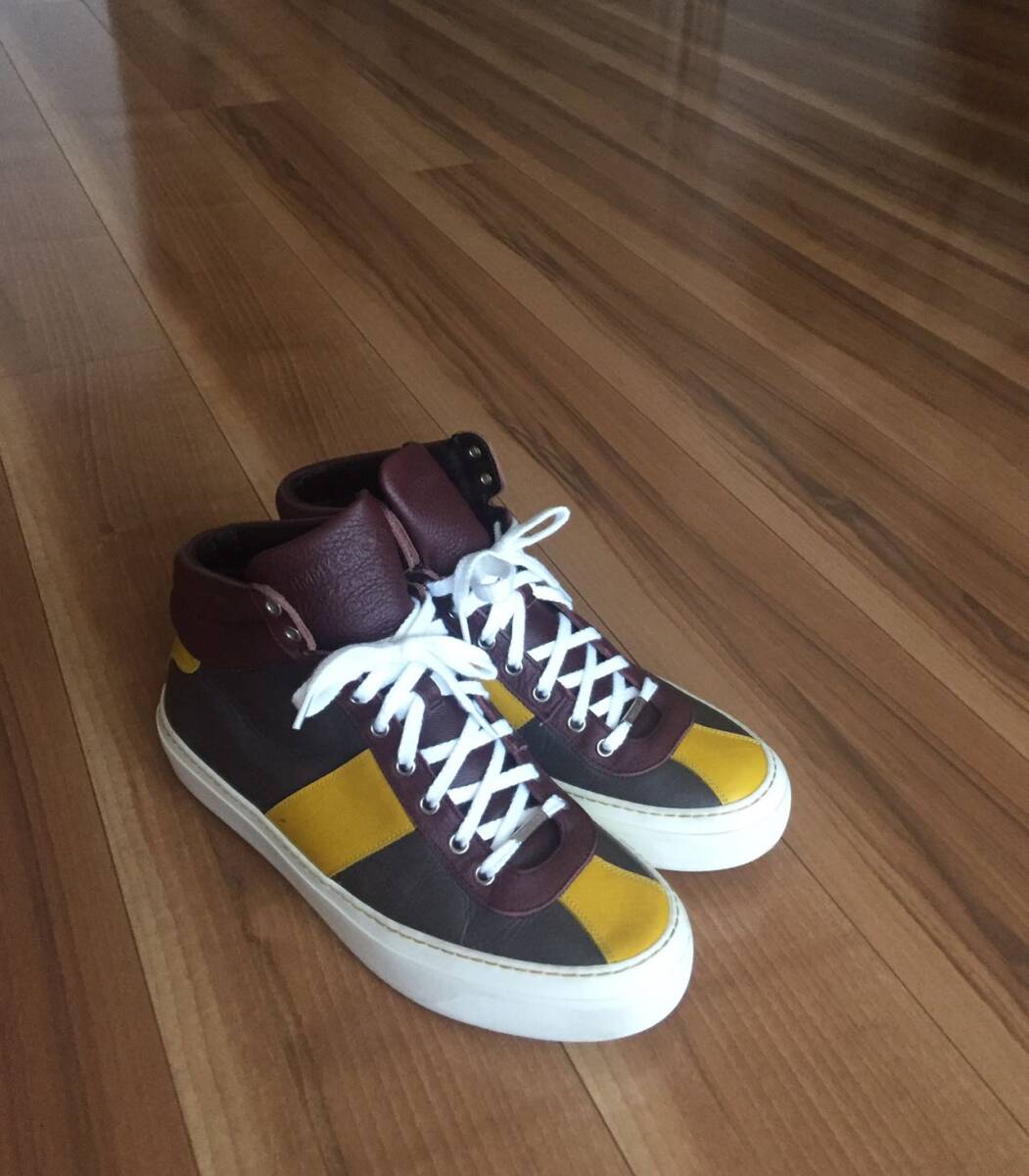 - 伊製 JIMMY CHOO ジミーチュウ・メンズ本革ハイカットスニーカー・サイズ43(約27cm)・高級シューズ・オールレザー・送料980円~
