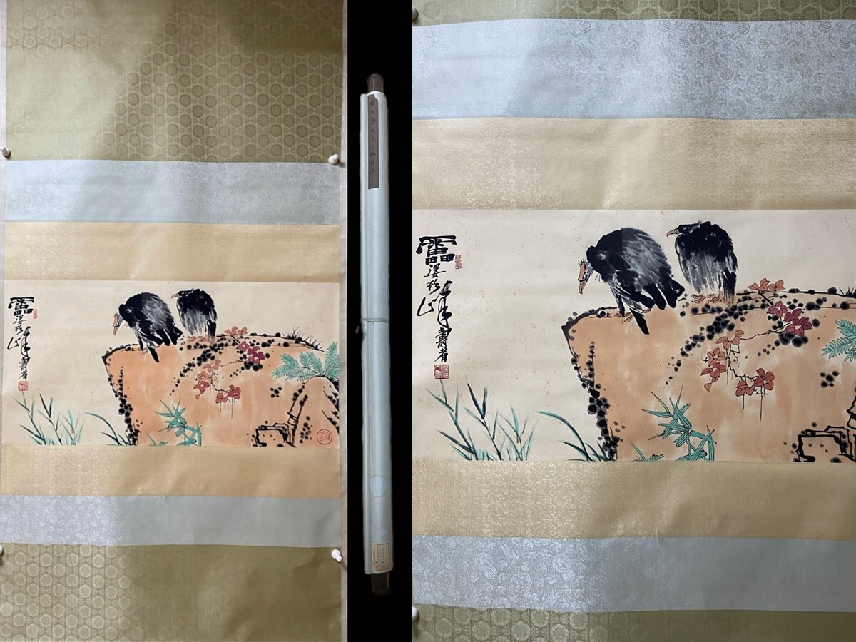 - 中国書画「潘天壽 双鷹図」肉筆紙本 掛け軸 墨寶妙品 書画立軸 巻き物 古美術 旧蔵出