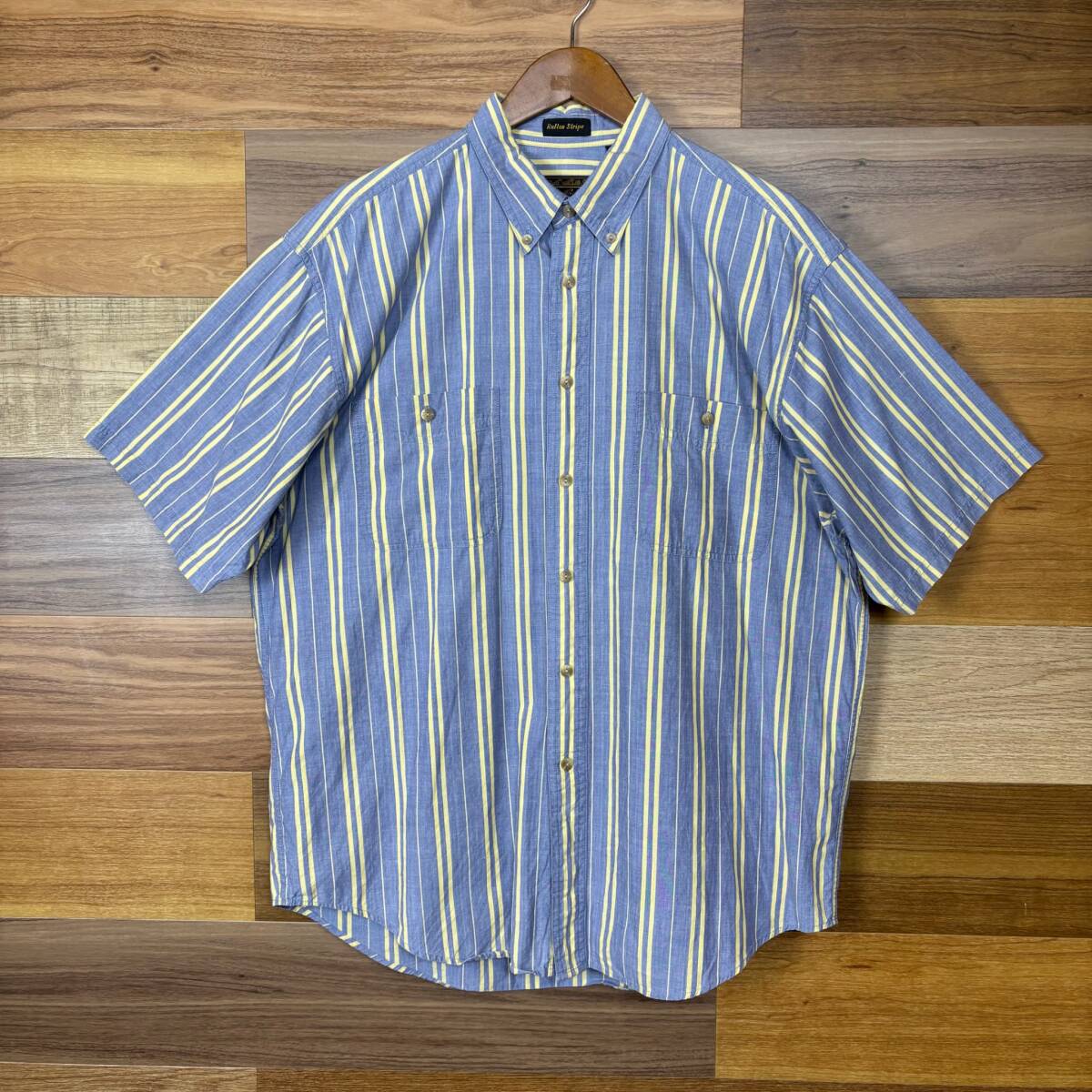 - USA製 80s~90s Eddie Bauer エディーバウアー 黒タグ ストライプ柄 ボタンダウン 半袖 シャツ サイズ メンズ L アメリカ製 古着 r25052728