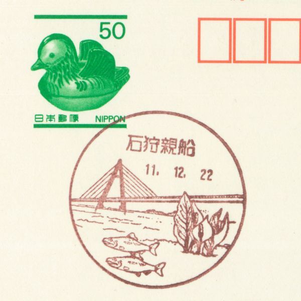 - 風景印☆初日☆北海道・石狩親船・H11.12.22