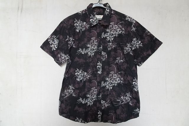 > EXCUSE/エクスキューズ/半袖シャツ/花柄プリント/左胸ポケット/黒/ブラック/白/ホワイト/茶/ブラウン/Mサイズ(6/18R7)