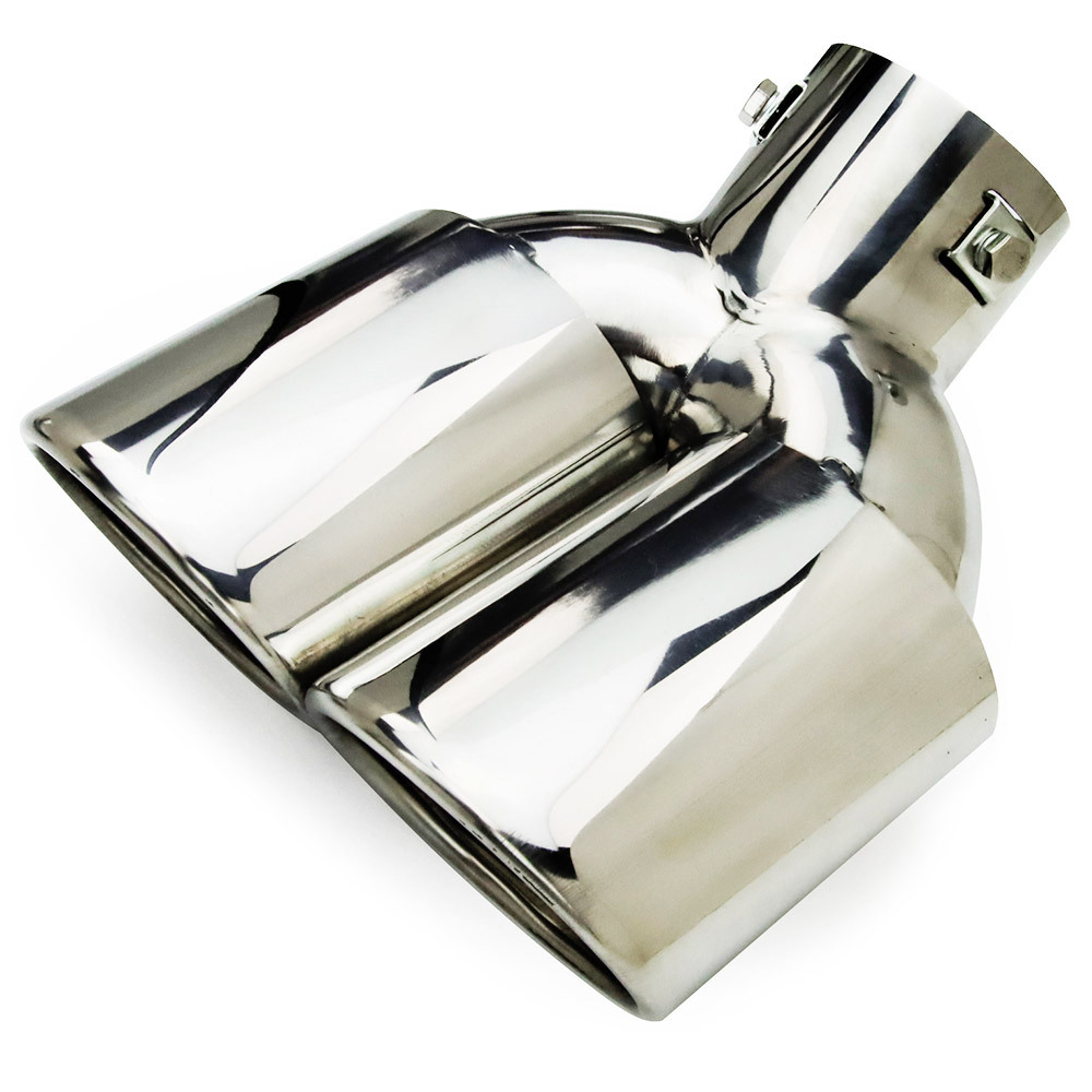 > 「脱落防止ワイヤー付き」マフラーカッター 下向き 2本出し 約36mm~51mmのマフラー適用 外装 アクセサリー ステンレス製 シルバー