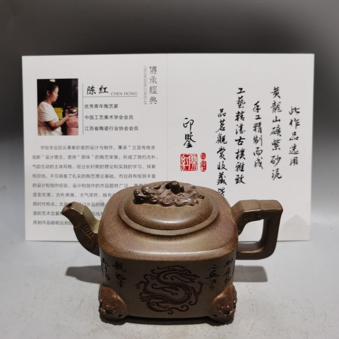 - 蔵友旧蔵出 紫砂壺 四方龍壺 陳紅款 原礦龍骨金砂 茶道品 煎茶道具 文房賞物 希少珍品