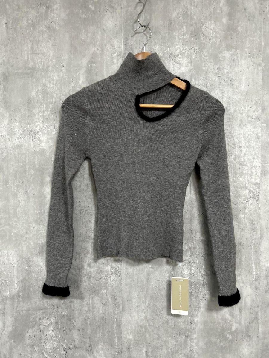 > ネコポスOK 美品 SAISON DE PAPILLON セゾン ド パピヨン タグ付未使用品 ニット セーター sizeL/グレー ◆■ レディース
