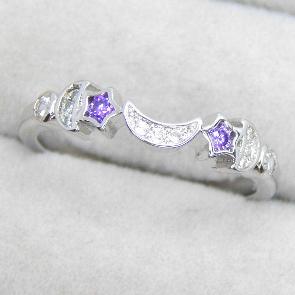 > 新品★送料無料 10号 星&月 CZアメジストダイヤモンドリング 指輪 レディースアクセサリー ジルコニア シルバー925 プラチナ仕上 RA-17