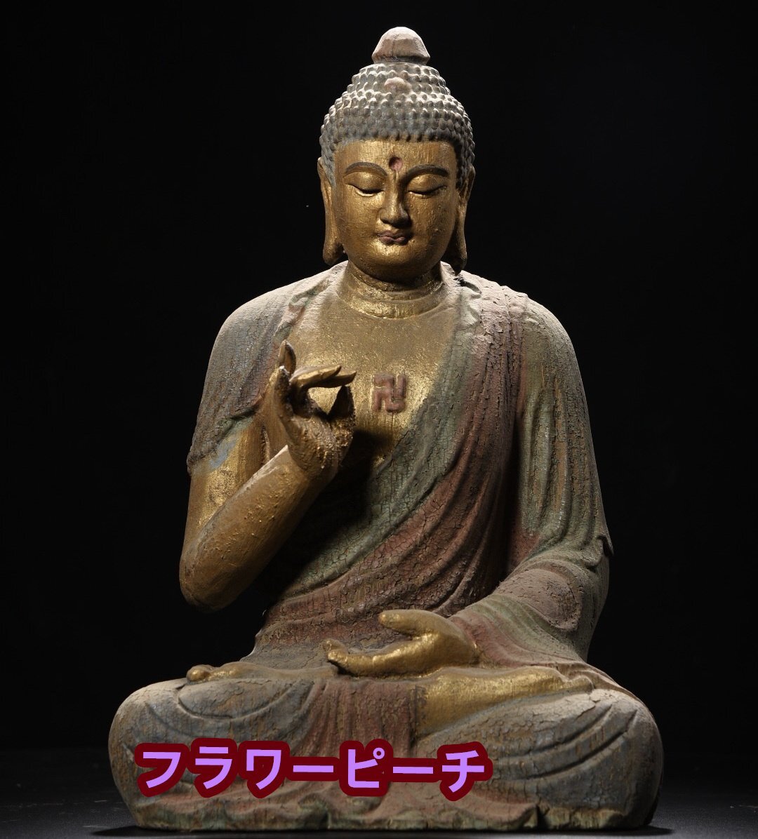 - 旧藏 中国 清代 古木彫り彩絵 漆金木彫釈迦像です 釈迦牟尼 中国古美術 極細工 置物 賞物