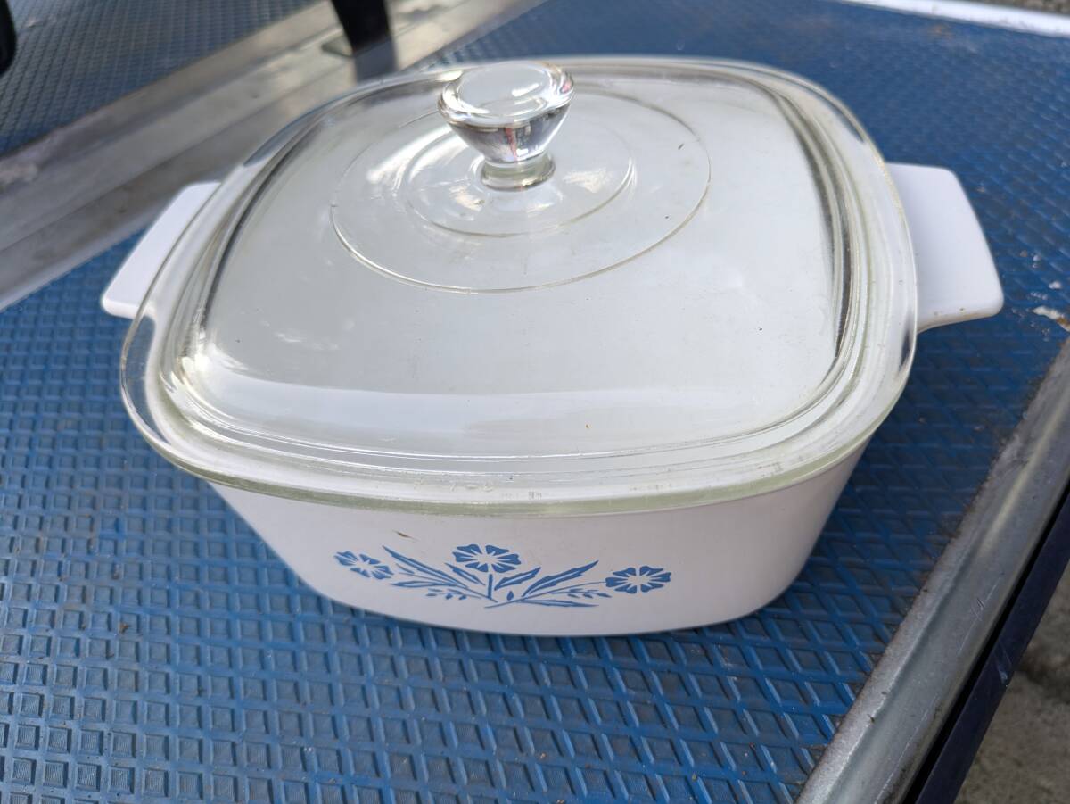 > パイロセラム 超耐熱ガラス食器 コーニングウェア ブルーコーンフラワー 22cm×22cm×9cm 現状品 10128442-45825