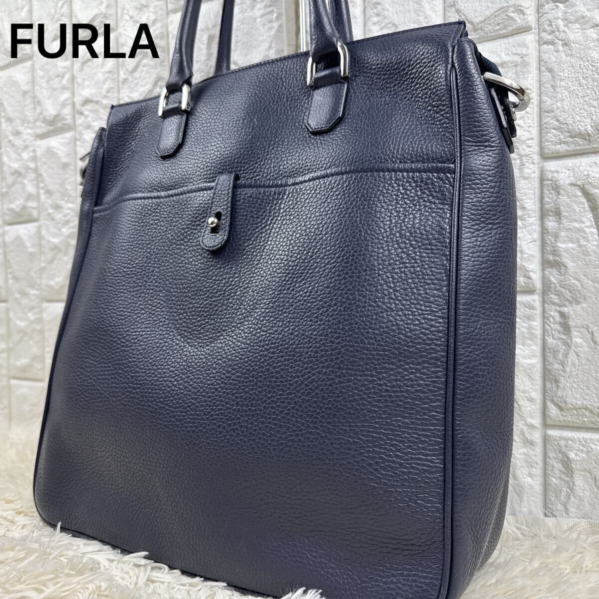 - FURLA UOMO フルラ トートバッグ ビジネスバッグ シボ革 ネイビー 大容量