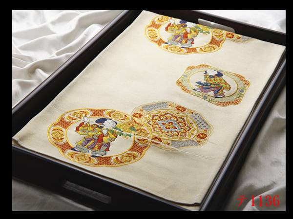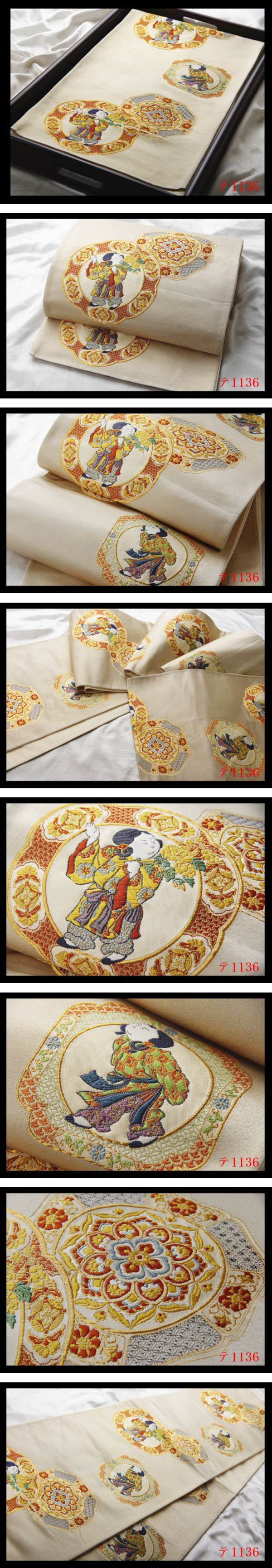 - 蔵【テ1136】西陣逸品 ベージュ色地 気品豊かに 正絹純金糸六通高級美術袋帯 ◇検◇簪着物名古屋帯和装小物帯締め
