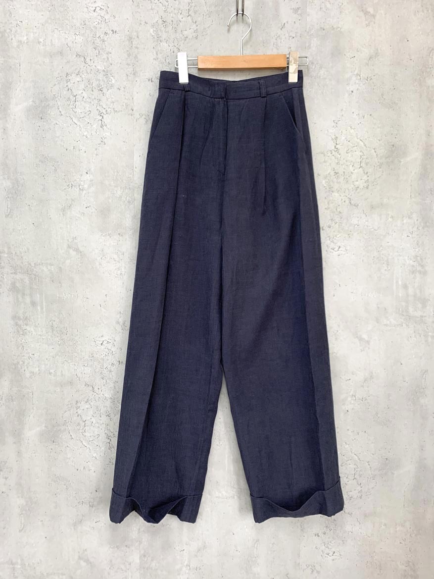 - ゆうパケットOK OHOTORO オオトロ Linen Turn-Up Pants パンツ sizeS(long)/濃紺 ■◇◎ ☆ fcb9 レディース