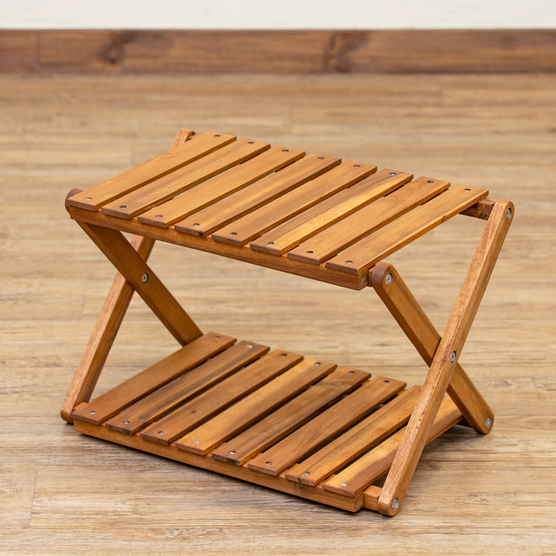 - ラック 2段 木製 棚 収納 おしゃれ 折りたたみ 折り畳み コンパクト 収納棚 インテリア 屋外 アウトドア アカシア材 天然木 防虫 耐久性