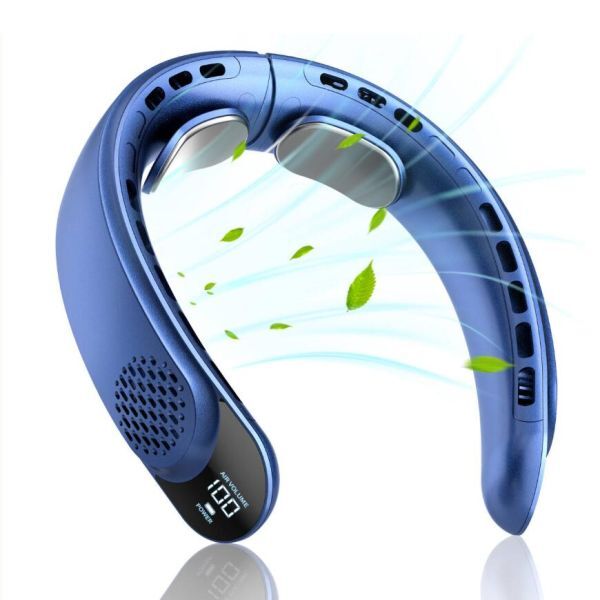 - 首掛け扇風機 ネッククーラー 扇風機 羽なし 小型軽量 4000mAh大容量 首かけ 3段階風量調節 2つ冷却プレート付 360度冷却 静音携帯/ブルー