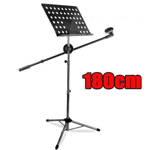 - INTENAVI 譜面台 高さ180cm 角度調節可能 マットブラック マイクスタンド付 演奏会